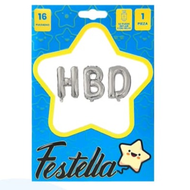 Precio original $7.800,00Precio actual $5.800,00| /Globo Metalizado HBD 16" Festella Plateado 16" X 1 Unidad Festella