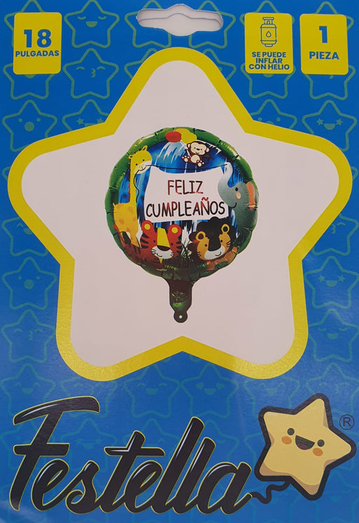 Globo Metalizado Redondo Feliz Cumpleaños Safari 18" Festella