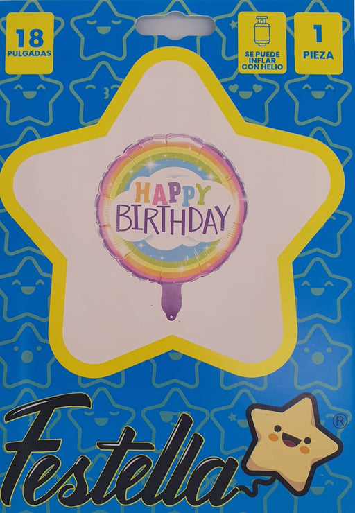 Globo Metalizado Redondo Happy Birthday Dulce Arcoiris 18" Festella