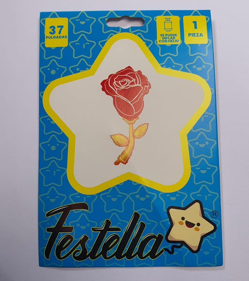 Globo Metalizado Rosa Roja Tallo Dorado 37" Festella