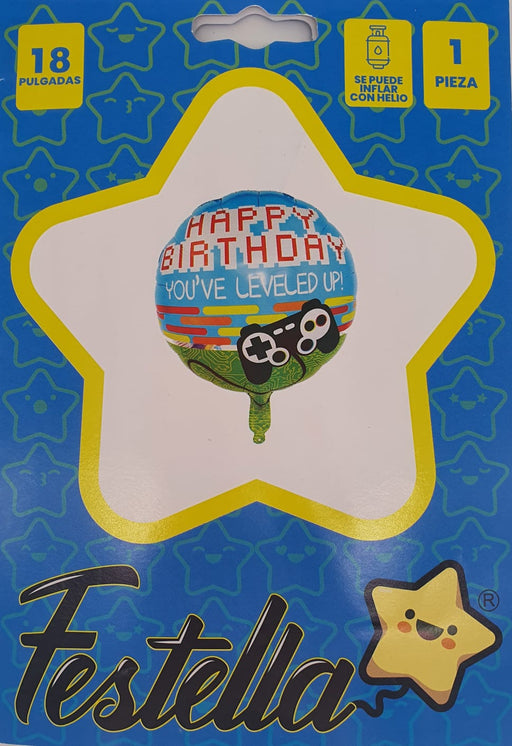 Globo Metalizado Redondo Happy Birthday Control Game 18" Festella