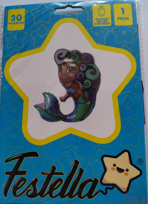 Globo Metalizado Sirena Morada Cola Verde 14" Festella