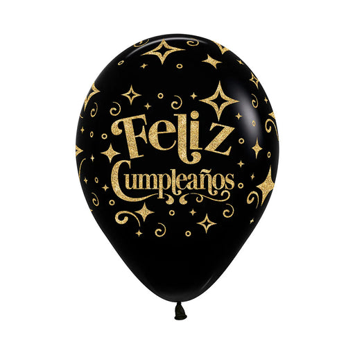 SempertexGlobo Infinity Escarchado Feliz Cumpleaños Diamante Dorado Fashion Negro r12 x 12 Unidades