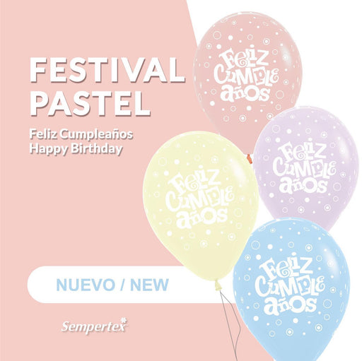SempertexGlobo Infinity Feliz Cumpleaños Festival Pastel Mate Surtido R12 x 12