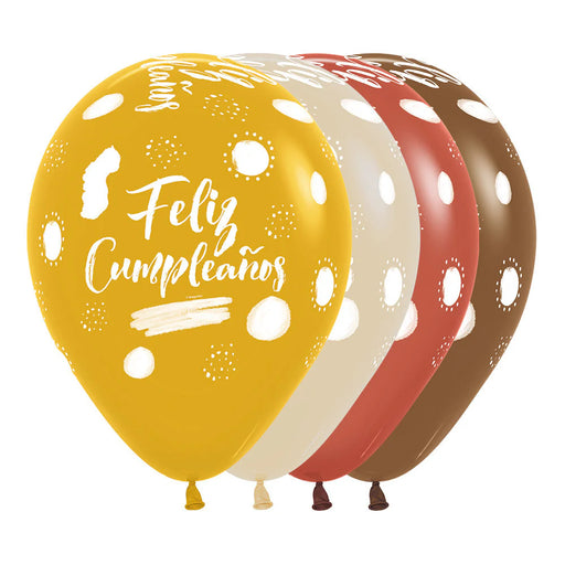 SempertexGlobos Infinity Feliz Cumpleaños Terra Fashion Surtido R12 x 12 Globos Color Fashion:Mostaza, Arena, Terracota.Tamaños:R-12: 12″(30 cm Ø)t: 18-24 h...