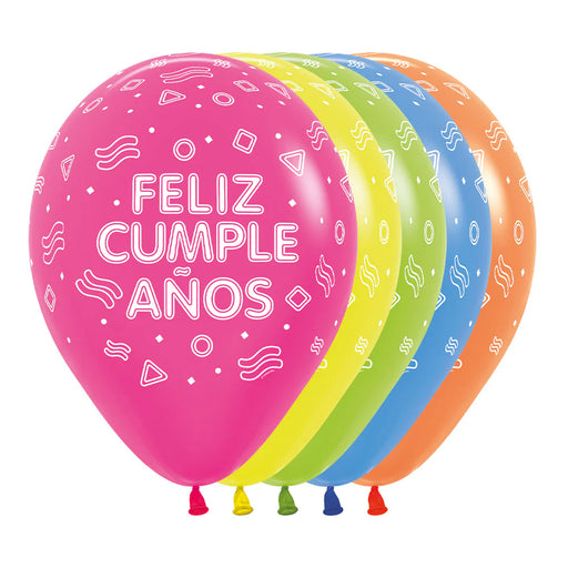 Precio original $11.500,00Precio actual $9.500,00| /Globo Infinity Feliz Cumpleaños Fluorescente Neon Surtido R12 X 12 Unidades Sempertex