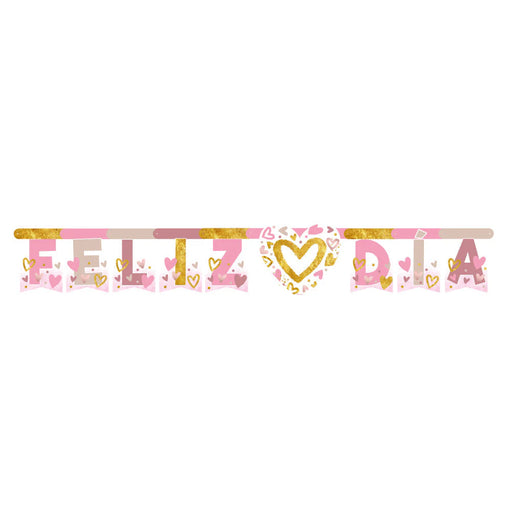 Precio original $12.500,00Precio actual $9.500,00| /Cartel de Letras Metalizado Corazones Brillantes Feliz Dia x 1 Unidad Sempertex