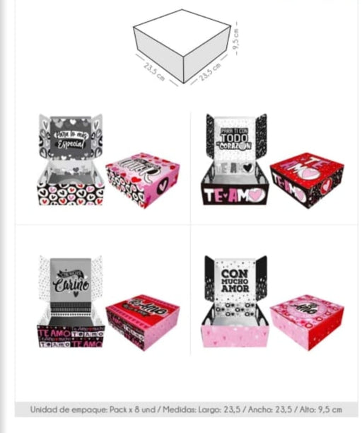 Precio original $24.500,00Precio actual $22.000,00| /Caja Empaque CTD Amor 23.5 x 23.5 x 9.5 cm x 8 Unidades