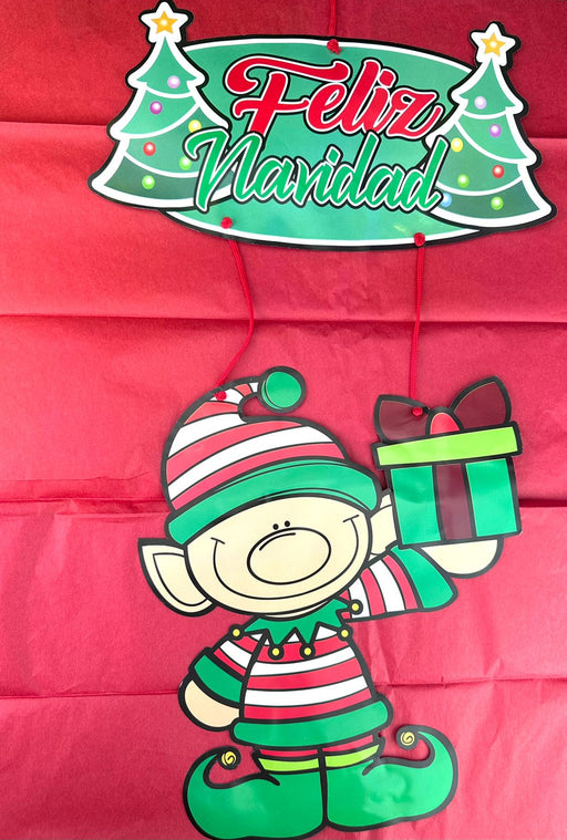 $7.900,00| /Letrero Corona Navideña Feliz Navidad Duende